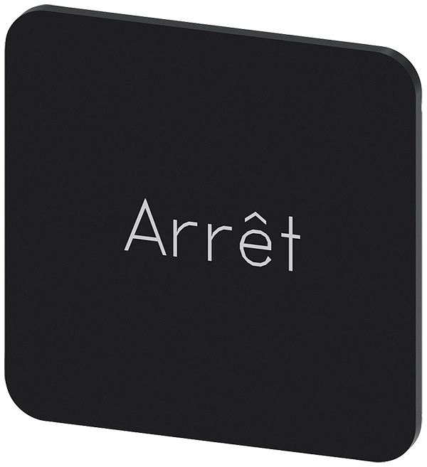 PLAQUITA DE INSCRIPCION PARA PEGAR EN LA CAJA, TAMANO PLAQUITA 22 X 22MM, PLAQUITA NEGRA, LETRA BLANCA, CON INSCRIPCION: ARRET