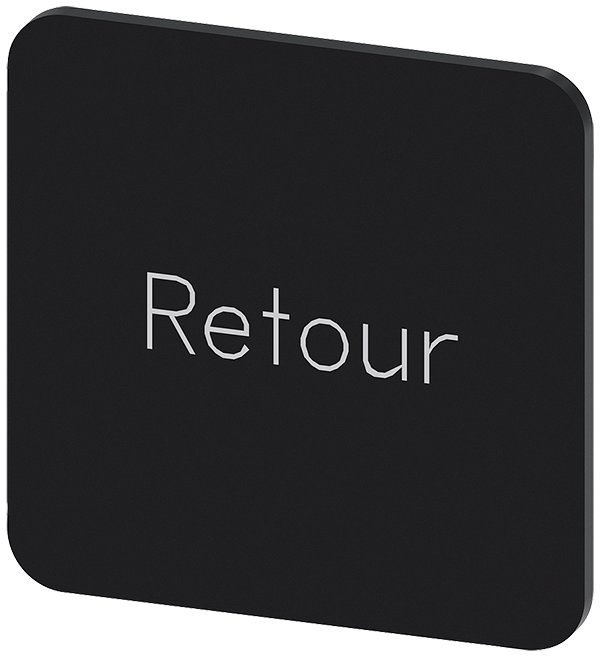 PLAQUITA DE INSCRIPCION PARA PEGAR EN LA CAJA, TAMANO PLAQUITA 22 X 22MM, PLAQUITA NEGRA, LETRA BLANCA, CON INSCRIPCION: RETOUR