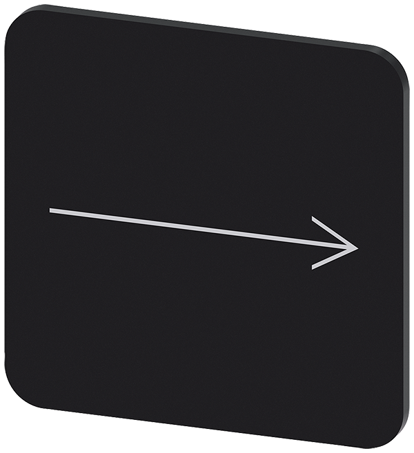 PLAQUITA DE INSCRIPCION PARA PEGAR EN LA CAJA, TAMANO PLAQUITA 22 X 22MM, PLAQUITA NEGRA, LETRA BLANCA, CON SIMBOLO GRAFICO: FLECHA HACIA LA DERECHA