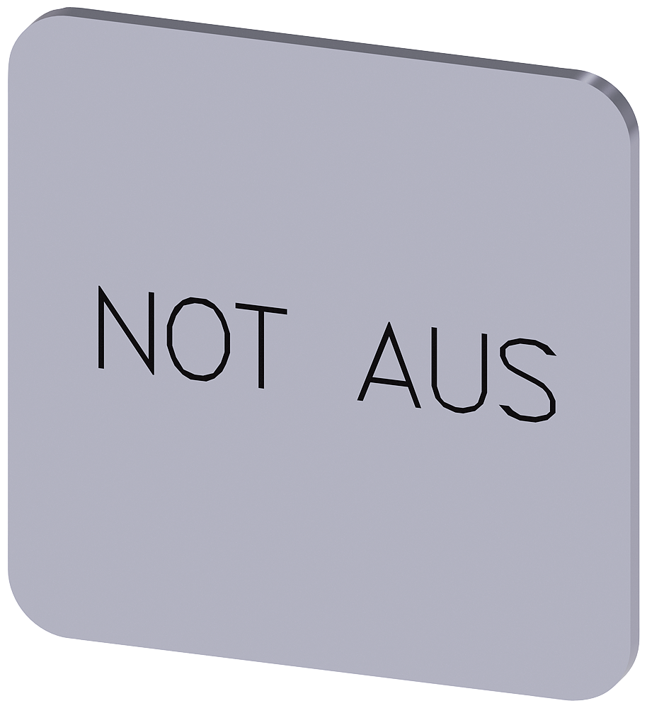 PLAQUITA DE INSCRIPCION PARA PEGAR EN LA CAJA, TAMANO PLAQUITA 22 X 22MM, PLAQUITA PLATEADA, LETRA NEGRA, CON INSCRIPCION: NOT-AUS