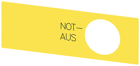 PLACA DE FONDO PARA PULSADOR SETA PARO EMERG., EN CAJA, AMARILLA, CON INSCRIPCION: NOT-HALT, AUTOADHESIVA