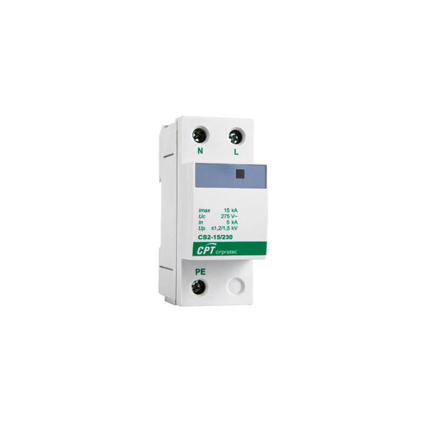 Protector contra sobretensiones transitorias, tipo 2, 230 V, 40 kA y monofásico (bipolar).