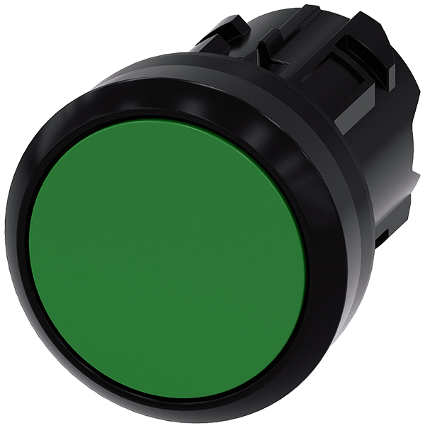 pulsador, 22 mm, redondo, plástico, verde, botón, (3SU1000-0AA40-0AA0)