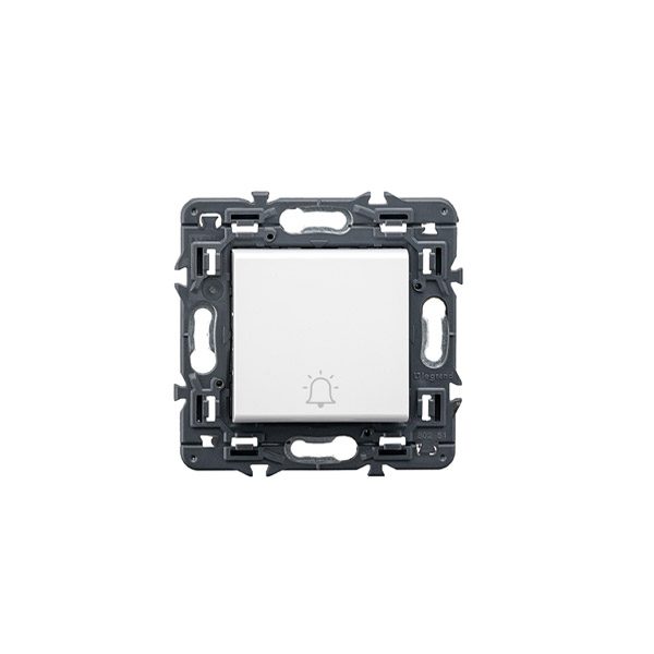 Pulsador con símbolo de campana 6 A – 230 V~ – Bornes automáticos – Blanco