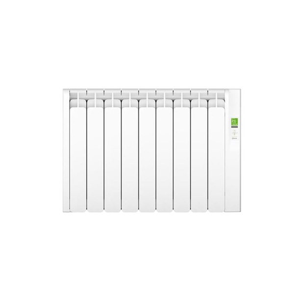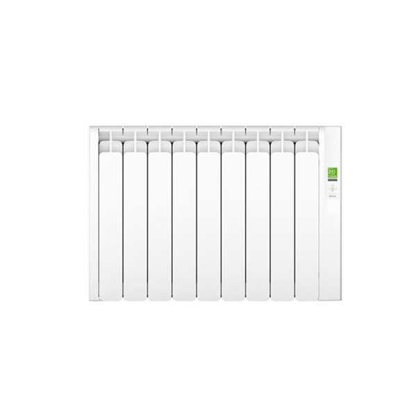 Radiador eléctrico digital KYROS, de 9 elementos y de bajo consumo 990W. Diseño optimizadopara la máxima disipación, electrónica SMD con micro ULP8,batería de litio y triac, compensación óptima 110 vatios/elemento, modo usuario: posibilidad de limitar las temperaturasde trabajo, pantalla TFT de 1,77″ de visualización óptima desde cualquier ángulo, comunicación inalámbrica mediante infrarrojos, control mediante teclado integrado, funcionalidadde producto accesible por menús visuales, programable 24/7 desde el propio radiador, termostato de seguridad, modos Eco/ Confort / Antihielo, incluyeplantilla y Kit de instalación.