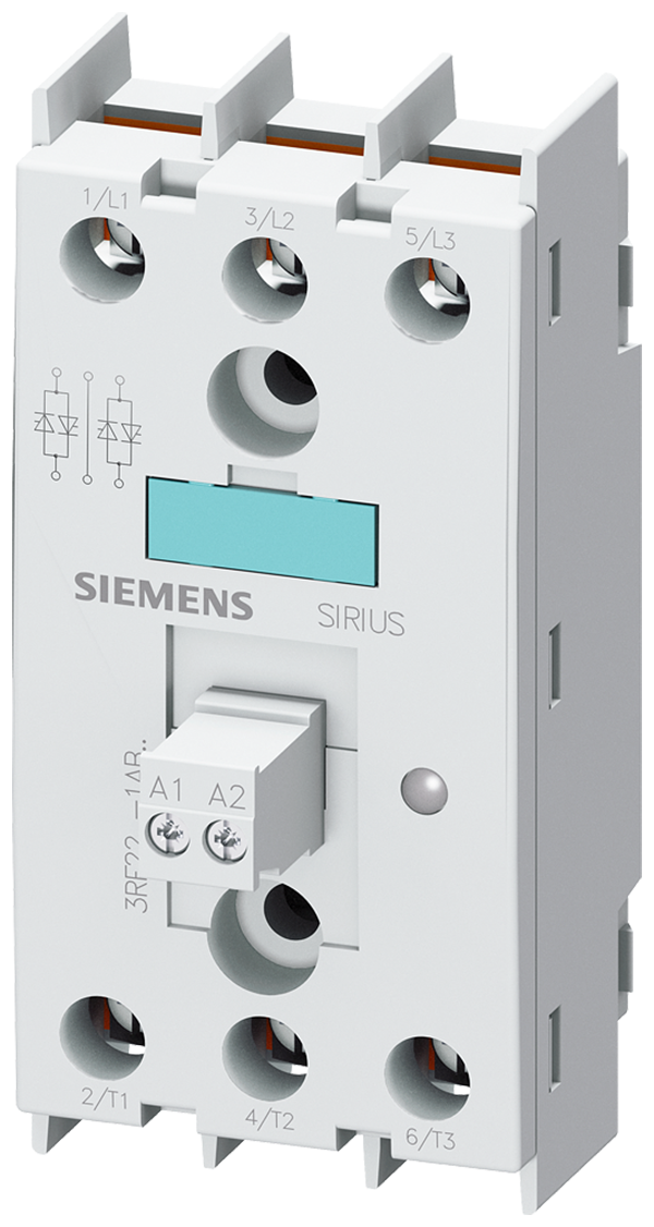 SIRIUS, Relé trifásico de estado sólido 3RF2 3RF2 55A 40 Grados C 48-600V / 4-30V DC 2 Fases Controladas Conexión por Tornillo tensión inversa 1200V
