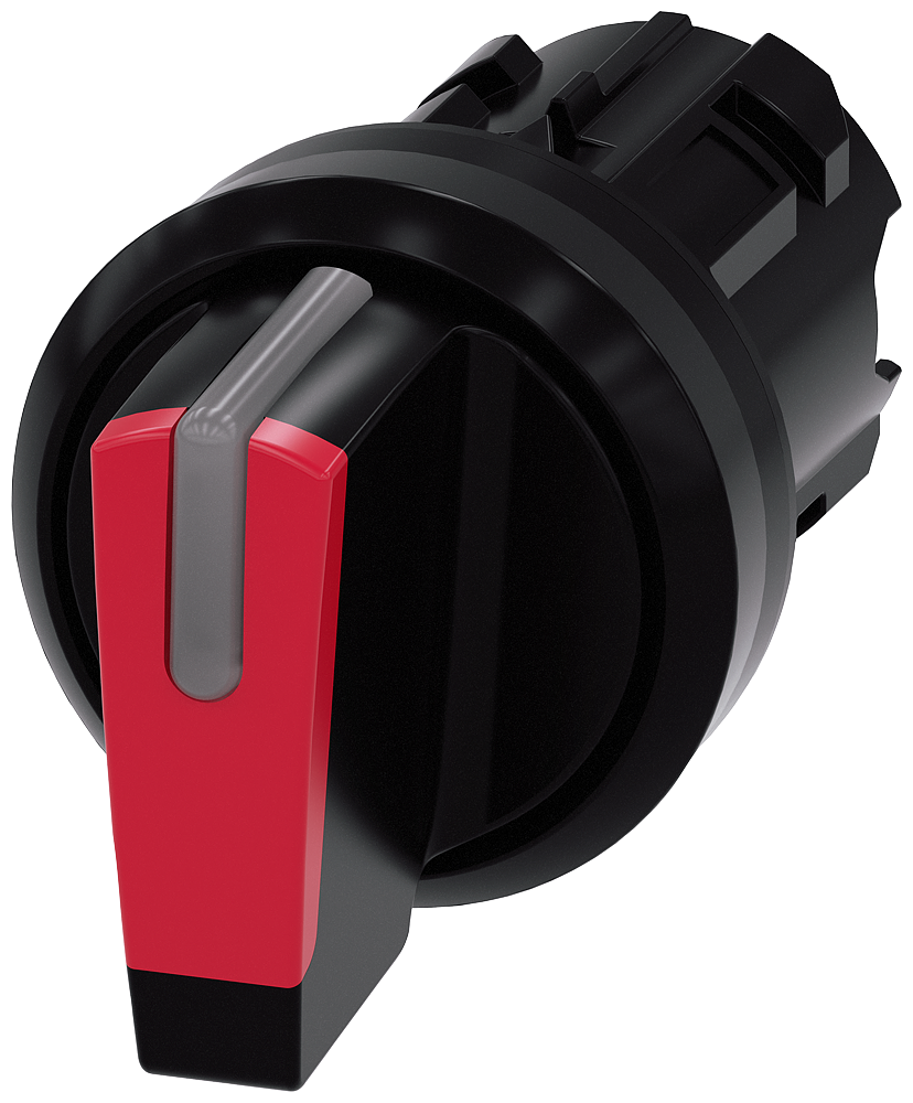 SELECTOR, ILUMINABLE, 22MM, REDONDO, PLASTICO, ROJO, MANILLA, CORTA, 3 POSICIONES I-O-II, SOSTENIDO, ANGULO 2X45 GRADOS, 10:30H/12H/13:30H