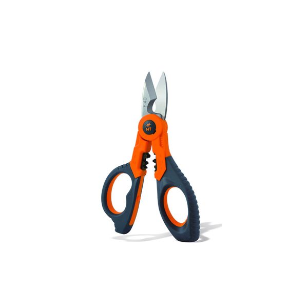 Nueva e innovadora Tijera profesional F40 capaz de realizar 4 funciones diferenciadas (Tijera, Cortacables hasta 70mm2 flexible, Pelacables y Crimpadora para prensa terminales desde 1 a 6mm2.) Todo ello en una única herramienta.