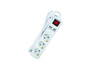 Base triple bipolar con interruptor + cable y salida USB FENOPLASTICA